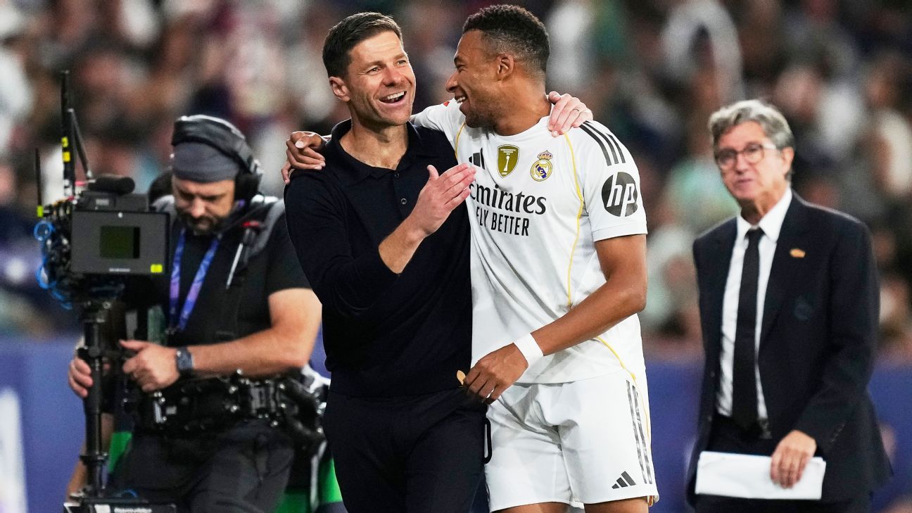 “他表现得不错,”阿隆索笑着对Movistar记者里卡多·谢拉说道,同时目光不经意地瞥向场外的姆巴佩,“一如既往地出色——攻入两球,影响力非凡。我们很高兴能拥有他,但前方的路还很长,现在才刚刚起步……更何况,他就站在我身旁一米处,我可不能再多说什么了,对吧!”