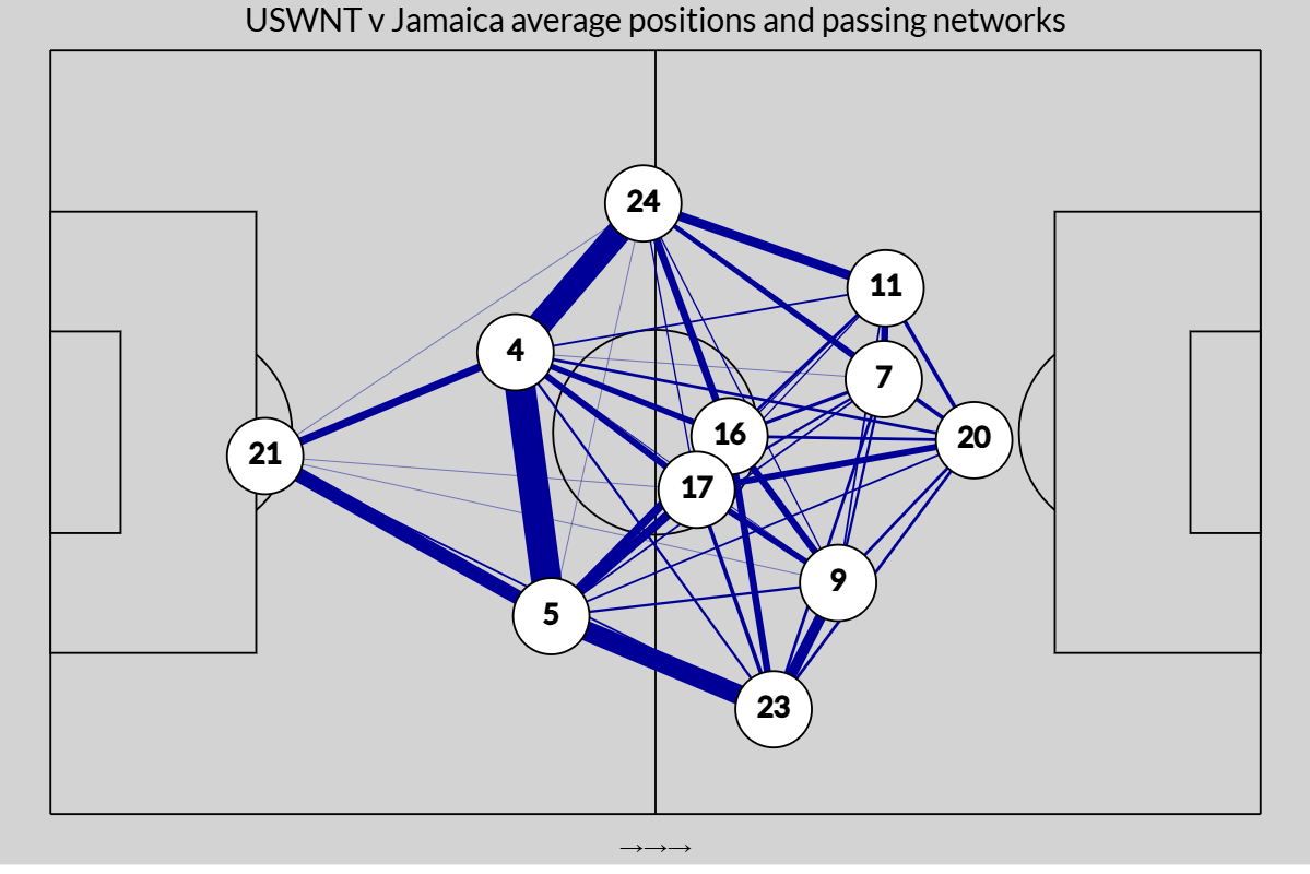 马卡里奥更适合打10号,因此他扮演了假9号前锋的角色——这是美国国家队在最近的记忆中没有经常扮演的角色。这是一个两难的问题:这让马卡里奥可以自由发挥,与她的攻击型中场结合,并使中后卫失去状态,但这也可能意味着有时会在锋线空间留下空白。