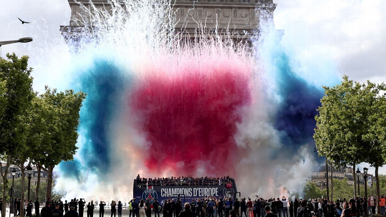 在巴黎圣日耳曼获得首个期待已久的欧冠冠军后,一夜之间的死亡事件破坏了这个充满活力的夜晚。埃菲尔铁塔上闪耀着球队的色彩,球迷们彻夜狂欢。