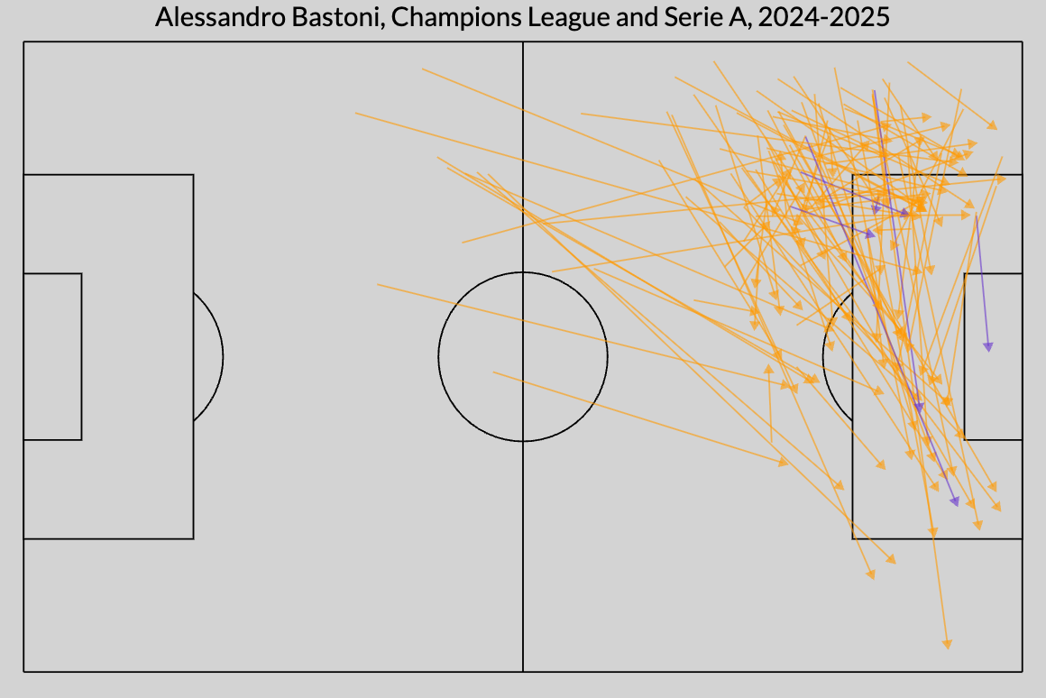 以下是巴斯托尼今年为国米增加至少1%进球机会的传球: