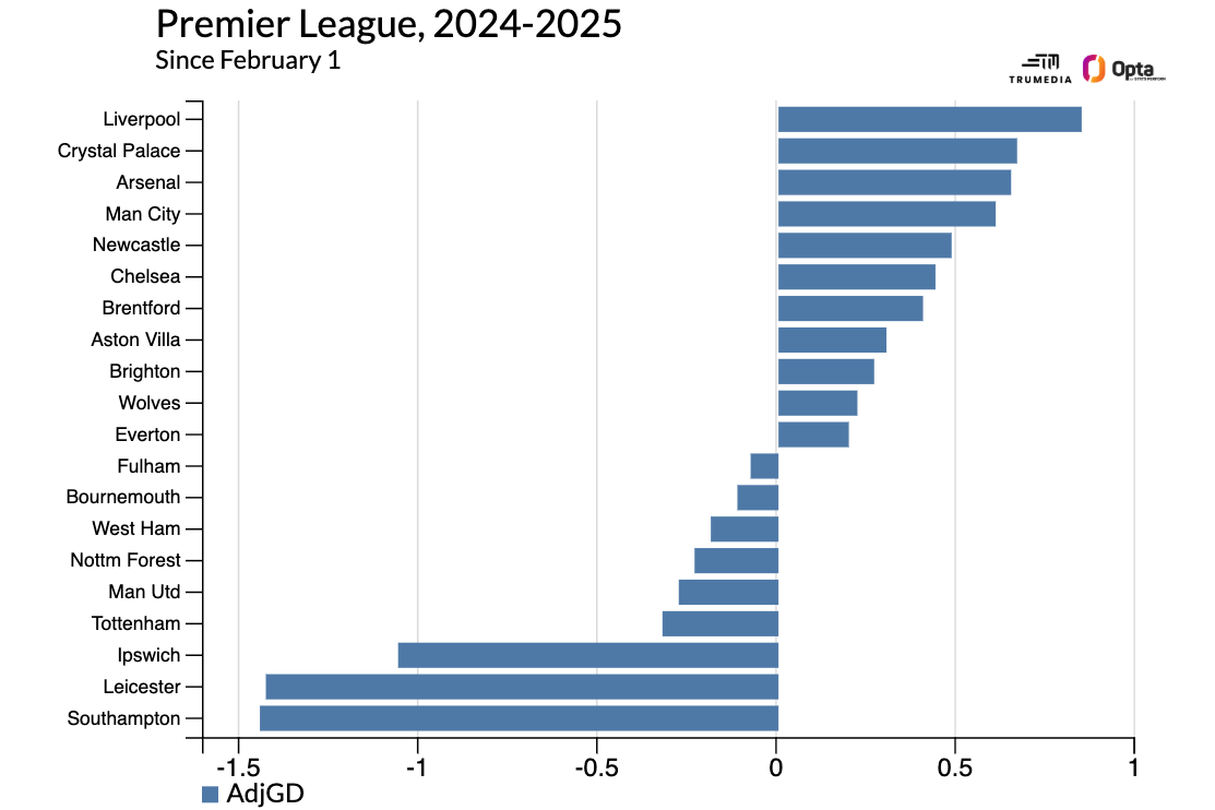 我喜欢使用的一种确定玩家价值的简单方法是结合传统和高级数据。虽然像预期进球(xG)这样的数据对于预测未来的表现非常有用,但实际将球踢进球门比球员可以做的任何其他个人动作都能提供更多的即时价值。为了评估球场上发生的其他事情,Stats Perform有他们的预期控球率数据,该数据估计每个动作增加或减少球队得分机会的程度。