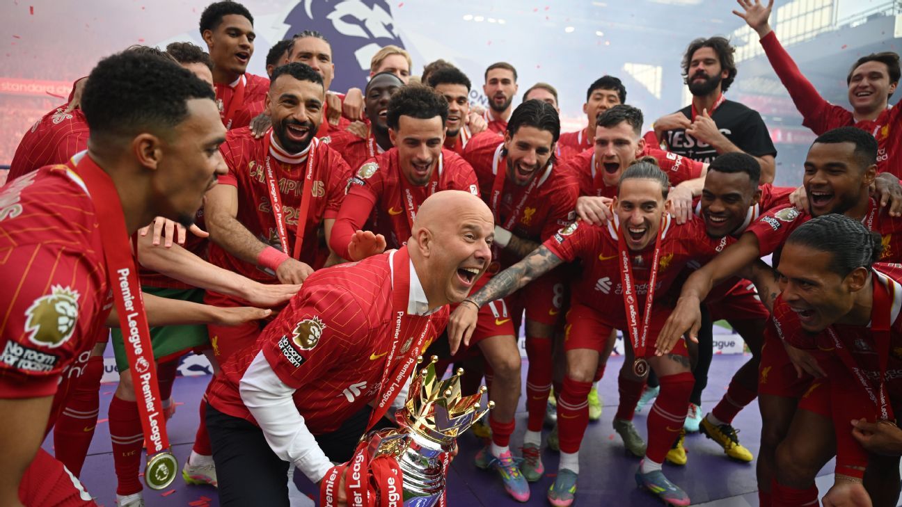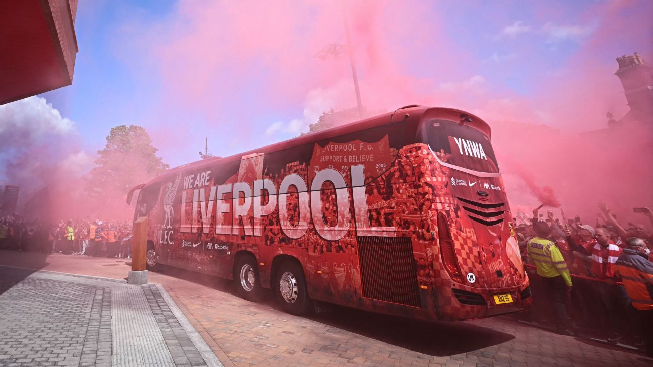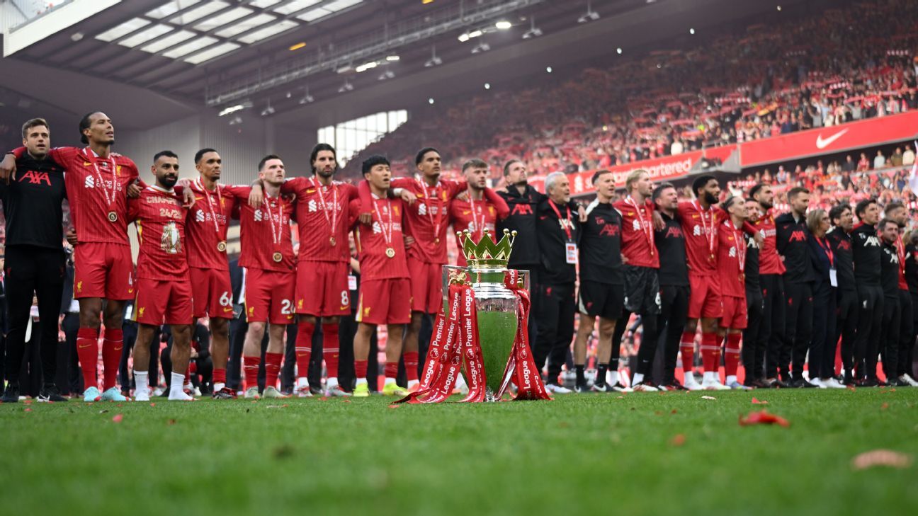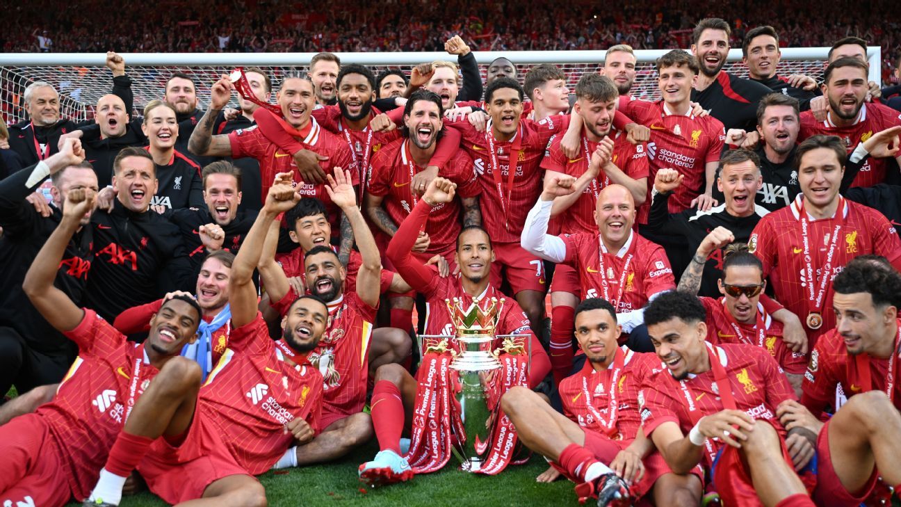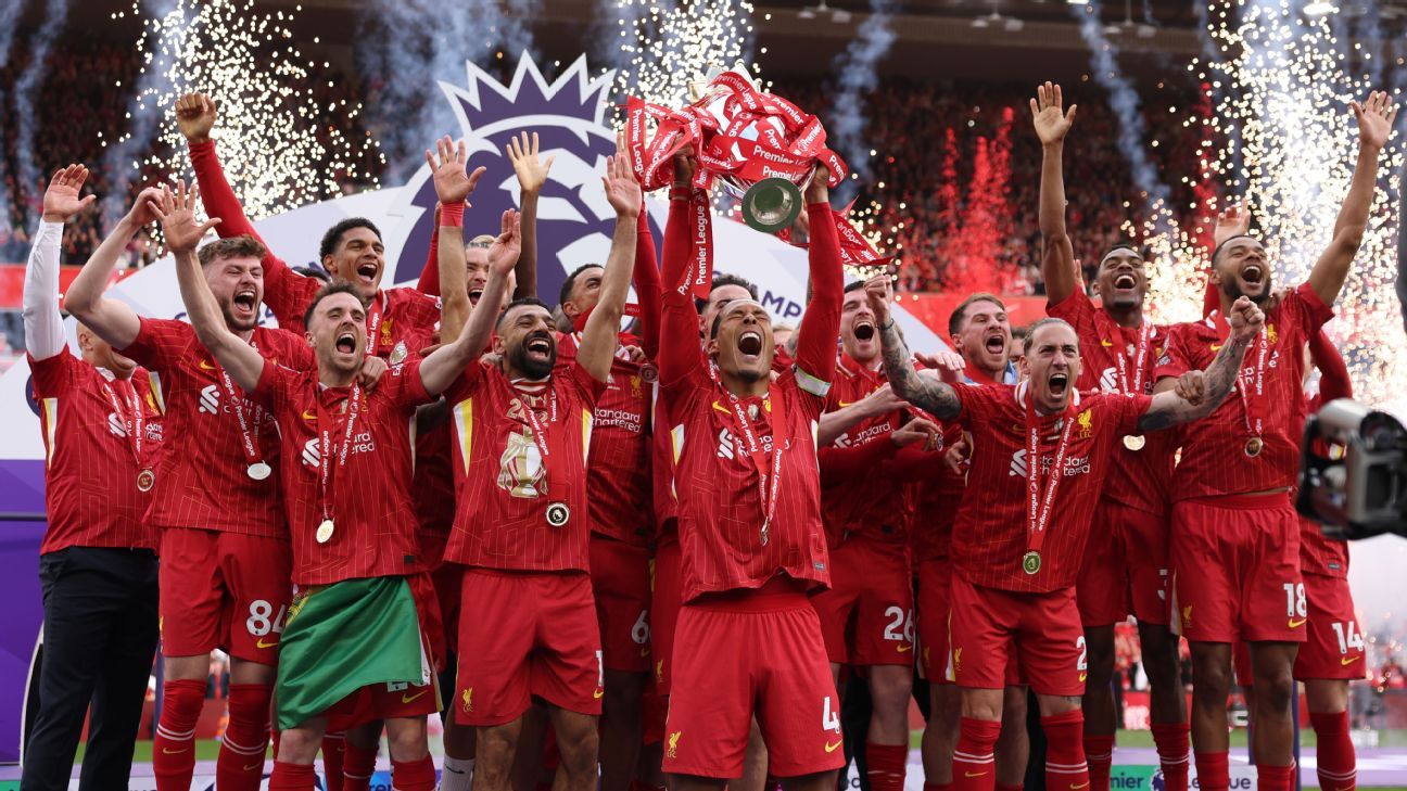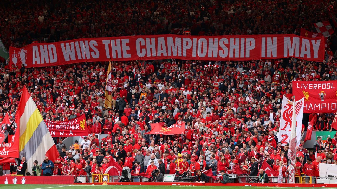 维吉尔·范迪克在职业生涯中第二次举起英超奖杯,他的球队在安菲尔德与球迷一起庆祝他们的成就——这是他们在2020年冠状病毒病大流行期间赢得冠军时无法享受的。
