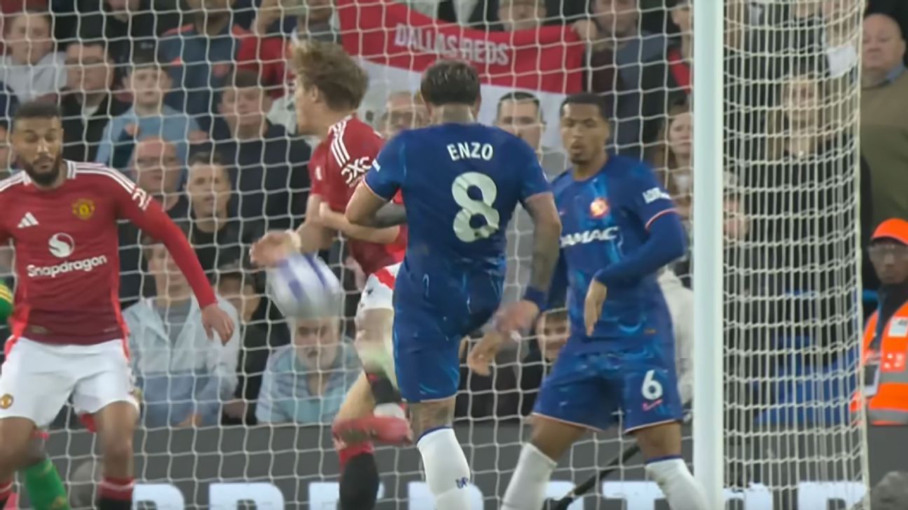 发生了什么:切尔西在第28分钟进攻,球在禁区内传给了恩佐Fernández。阿根廷国脚试图凌空抽射,但他的射门击中了拉斯穆斯·赫隆德。切尔西球员要求判罚手球,但主裁判克里斯·卡瓦纳不感兴趣,并给了曼联一个任意球,因为Fernández对努塞尔·马兹拉维犯规。VAR克雷格·帕森检查过了。