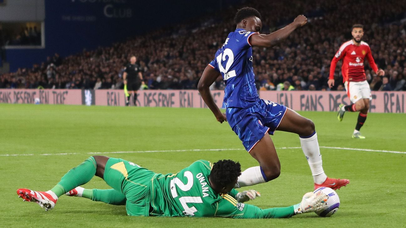 事件经过:切尔西在第61分钟获得了一个点球,特里克·乔治被曼联门将安德烈·奥纳纳铲倒在地。裁判卡瓦纳指着点球点,由VAR检查。