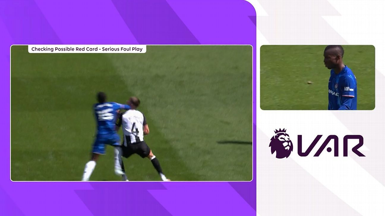事件:第33分钟,守门员罗伯特Sánchez向前长传。尼古拉斯-杰克逊试图挑战纽卡后卫斯文-博特曼,结果将后者撞倒在地。主裁判约翰·布鲁克斯(John Brooks)出示了一张黄牌,但VAR达伦·英格兰(Darren England)认为这可能是一张红牌。(看这里)