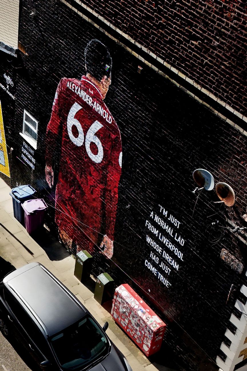 同年红军举起奖杯后,亚历山大-阿诺德在西比尔街获得了一幅壁画,离安菲尔德只有一箭之遥。这幅精美的艺术品描绘了这位后卫,旁边写着:“我只是一个来自利物浦的普通小伙子,我的梦想刚刚实现。”