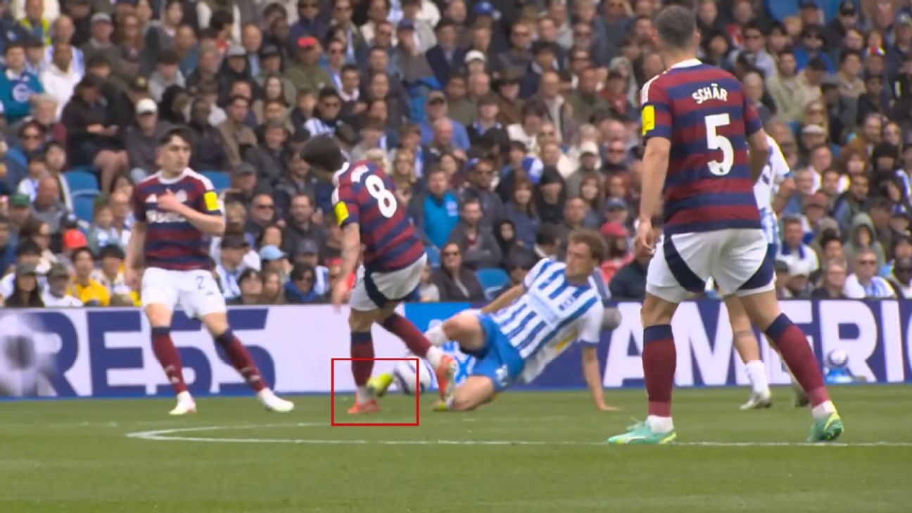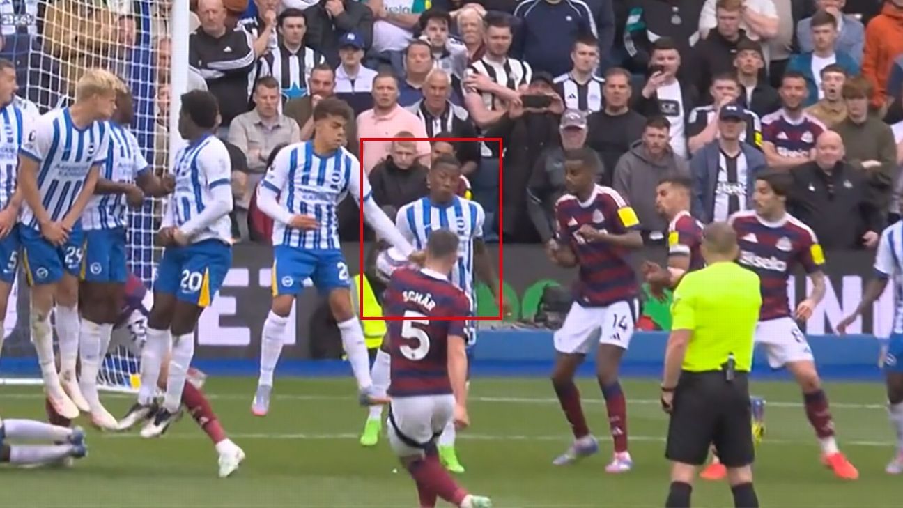 发生了什么:珀维斯Estupiñán被判罚处理了费比安Schär任意球的射门,帕森第三次指向对纽卡斯尔有利的位置。(看这里)