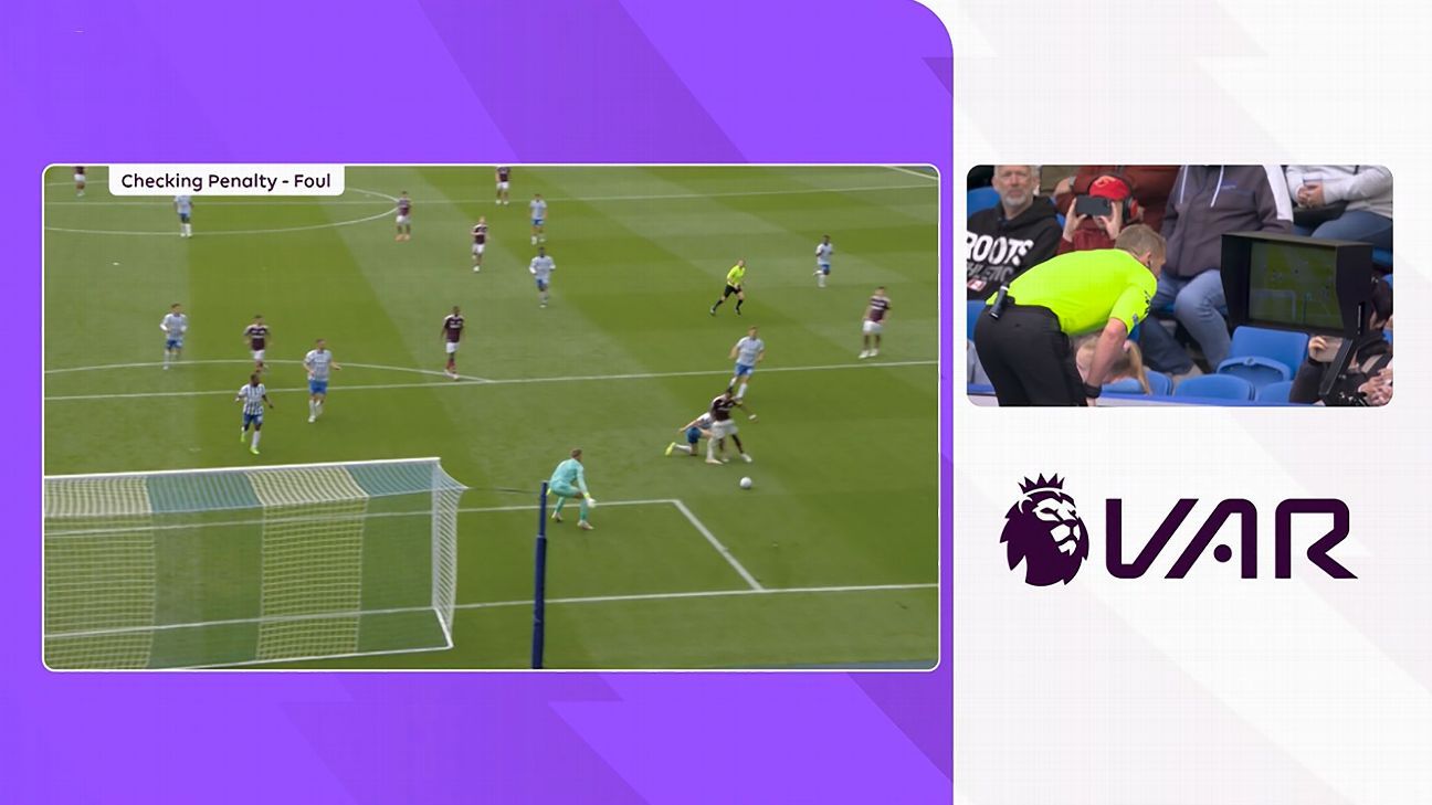 在像这样的VAR审查中,你会看到VAR试图为接触点找到一个定格帧,以判断它是发生在区域内还是外部。