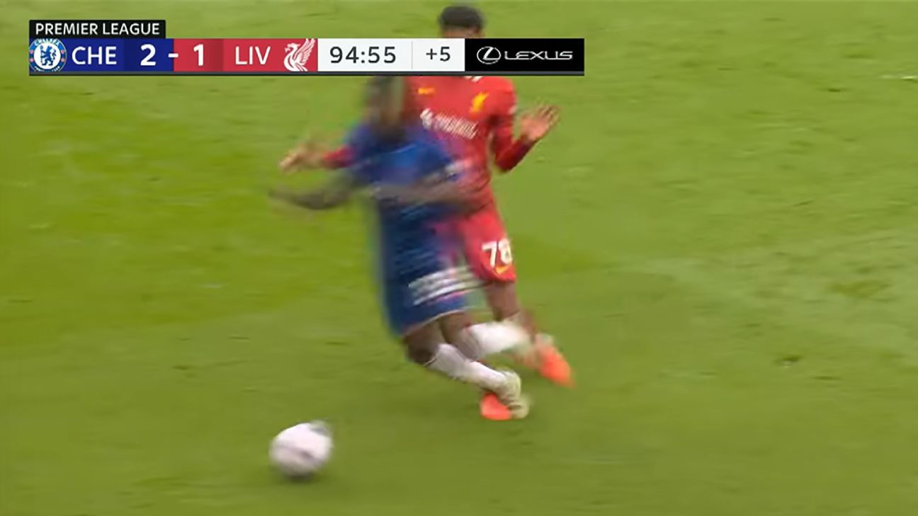事件经过:切尔西在补时阶段的最后几秒获得了一个点球,莫伊萨梅斯·卡伊塞多突破禁区,在贾雷尔·昆萨的防守下倒地。主裁判西蒙·霍珀(Simon Hooper)指着点球点,由VAR约翰·布鲁克斯(John Brooks)检查。
