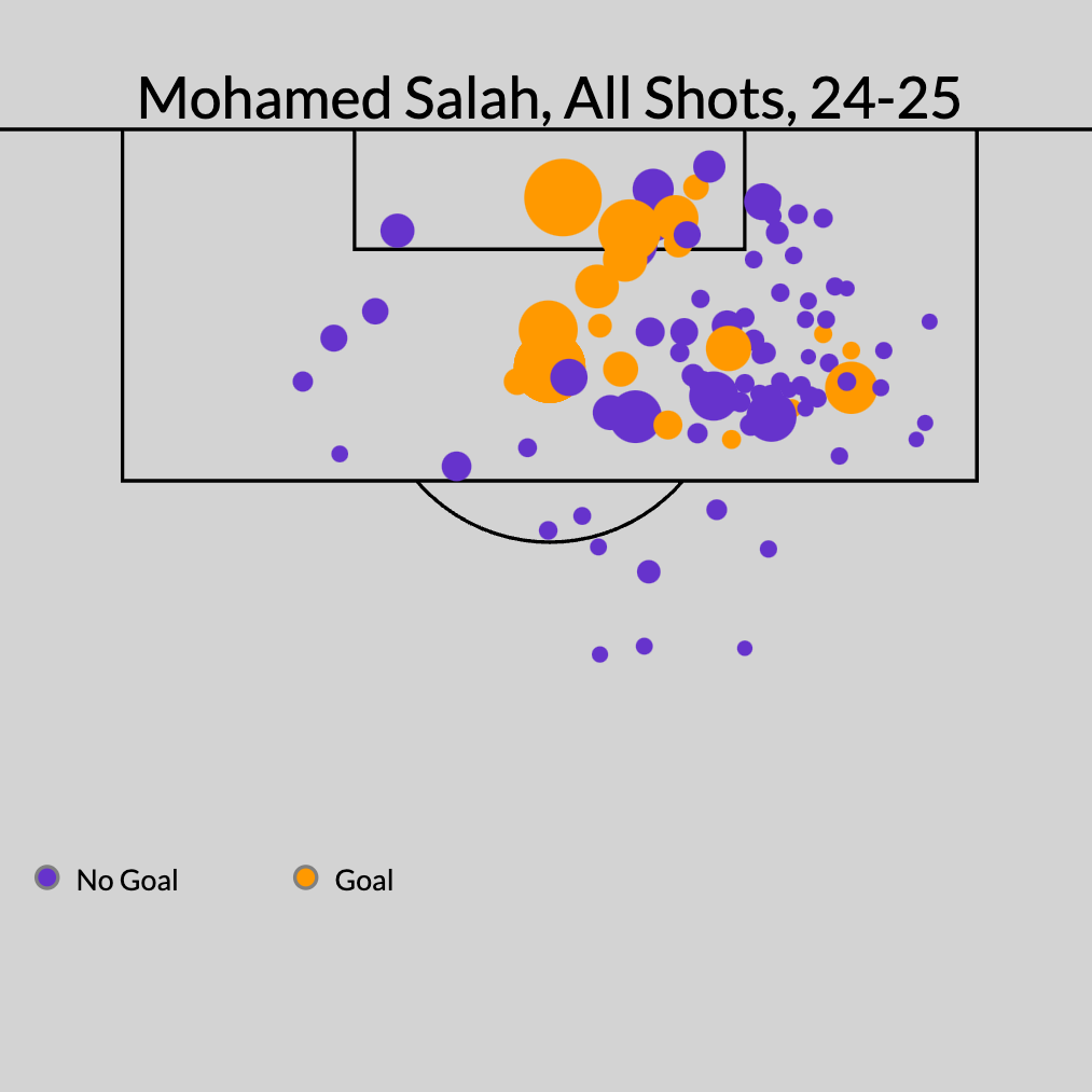 这也将打破英超联赛的纪录:安迪·科尔在1993-94赛季为纽卡斯尔联队创造的48球。科尔在没有打进一个点球的情况下做到了这一点——这可能是体育史上最被低估的个人赛季。萨拉赫今年已经打进了7个点球。