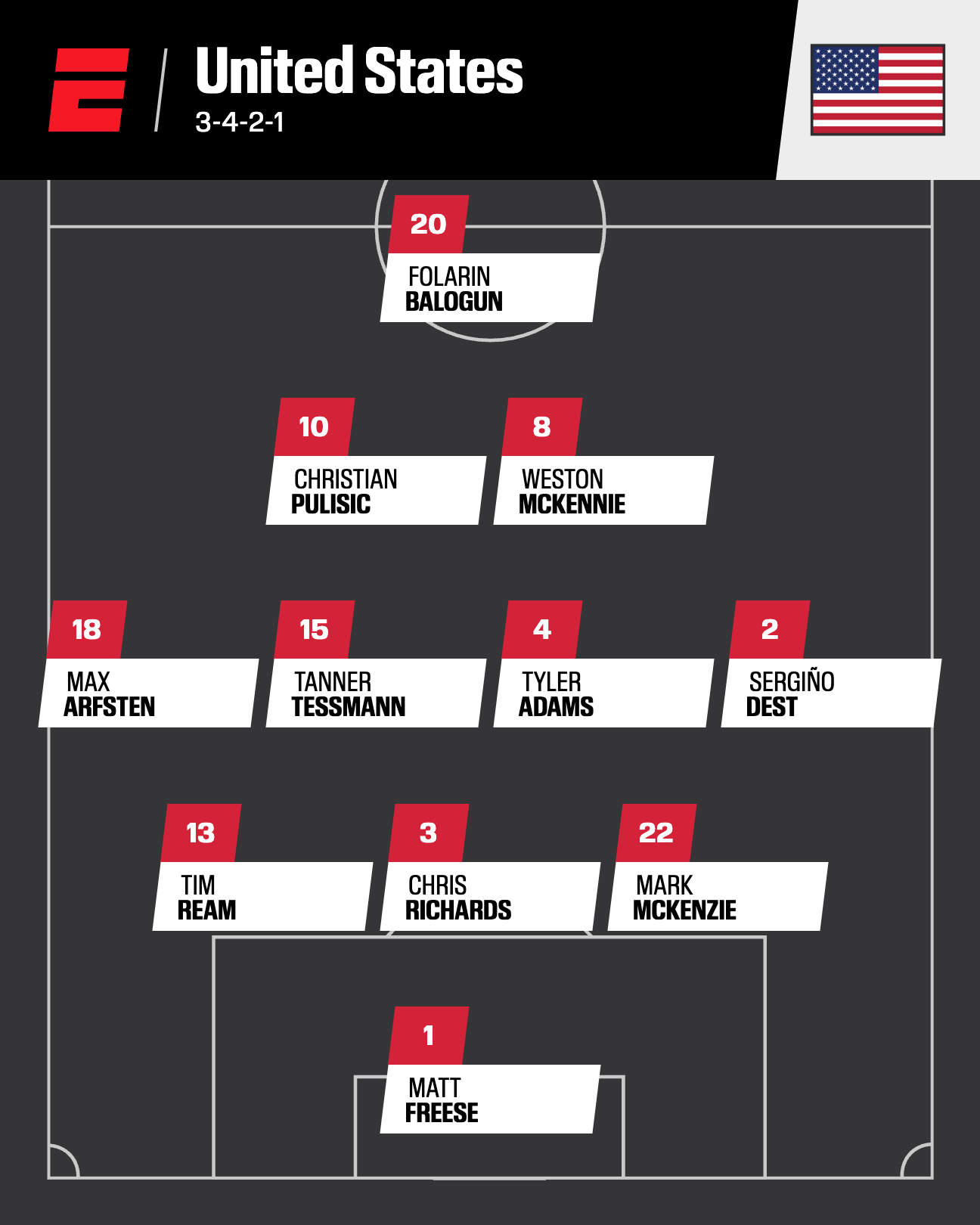 The question remains: Where does McKennie fit into the national team? He's logged plenty of minutes at wing back for Juve this season, but that position is relatively well stocked for the U.S., with Sergiño Dest, Tim Weah, Alex Freeman and Max Arfsten all vying for minutes. That leaves either the central midfield role alongside Tyler Adams, or does he occupy one of the more attacking midfielder spots in tandem with Pulisic?
