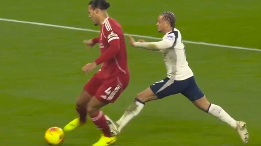 What happened: Tottenham's Xavi Simons was late with a challenge on Virgil van Dijk. Referee John Brooks' original decision was a yellow card for a reckless challenge.