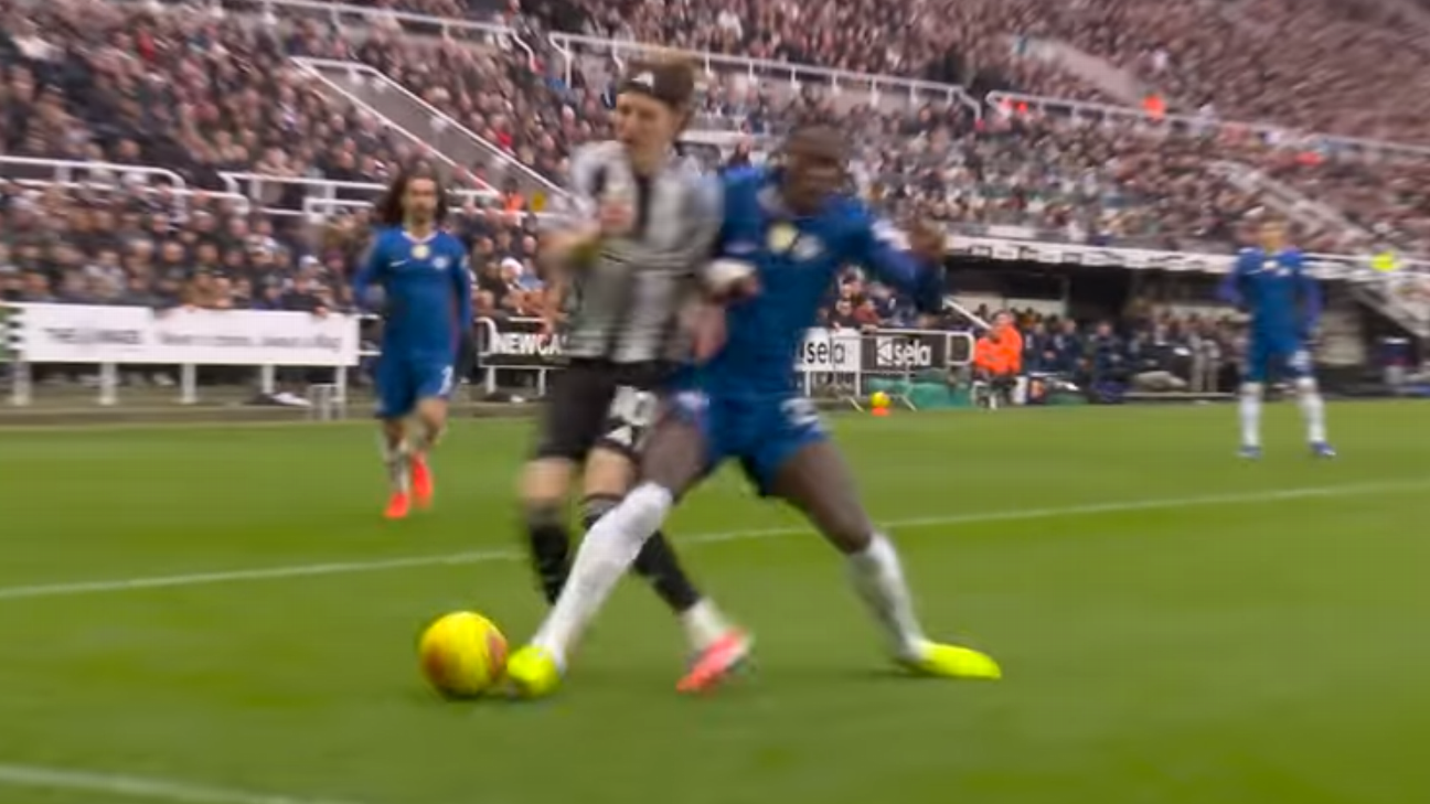 What happened: As the ball was played into the Chelsea penalty area, Chelsea defender Trevoh Chalobah challenged Anthony Gordon, seemingly making no contact with the ball and catching the left leg of Gordon. Referee Andrew Madley deemed it a fair challenge in realvtime.