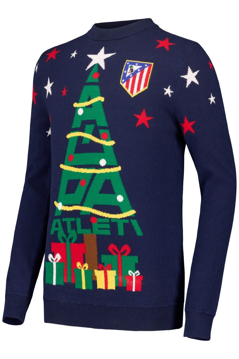 胸前骄傲地印着俱乐部徽章,马竞的藏青色毛衣以一个由著名口号“Aúpa Atleti”字母组成的三角形树为中心。设计简约、欢快、色彩缤纷,还推出了睡衣版,如果你真想在这个圣诞节窝在家里享受极致舒适,它再合适不过了。