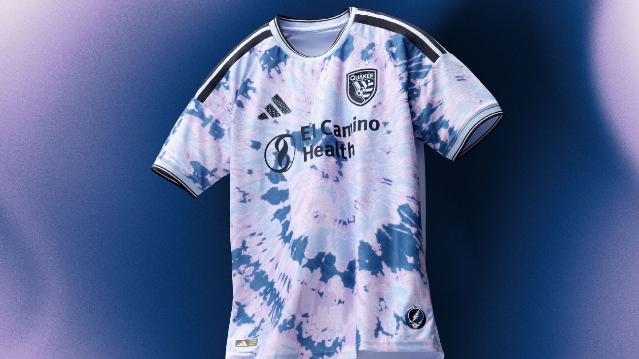 感恩而死乐队或许主要与旧金山联系在一起,但他们其实就在圣何塞附近的帕洛阿尔托成立的。这件球衣向这支标志性的湾区乐队致敬,设计非常出色。扎染图案在足球球衣上并不常见,但一点也不突兀或怪异,而且地震队的蓝黑配色搭配白色球衣,确保它依然能代表俱乐部本身。真是绝妙之作,说不定明年圣何塞还会推出“猩红秋海棠”主题球衣,把整套球衣系列补全呢。