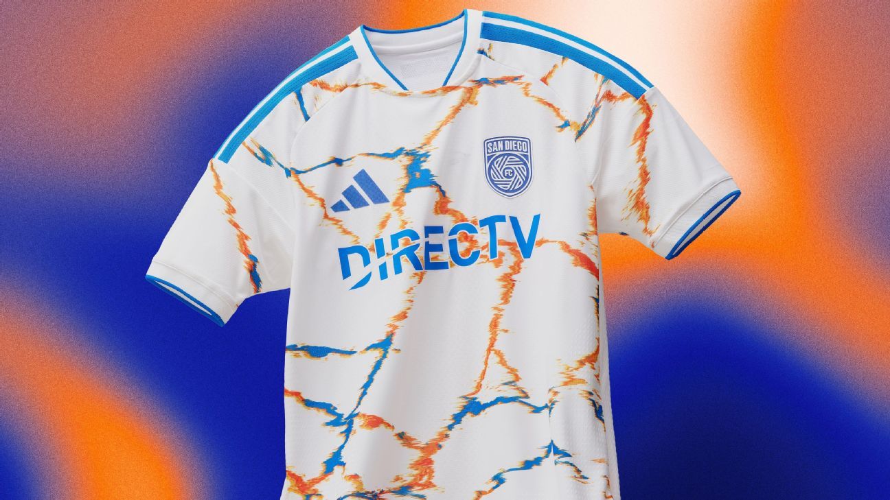 圣地亚哥去年只能穿标准版扩军球衣,所以这次能看到俱乐部终于有了设计——甚至任何设计——都让人欣慰。由于队徽实在太平淡,之前根本看不出他们会怎么搭配球衣,俱乐部最后决定继续用白色。虽然谈不上惊艳,而且SDFC的视觉识别也依然模糊不清,但大面积的蓝橙配色让球衣格外亮眼,至少比2025年的成衣版更有定制感。