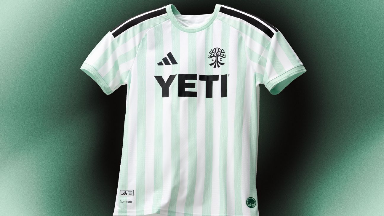 奥斯汀首次在主场和客场球衣上采用了垂直条纹设计,两件球衣都是绿色,可能会显得有点重复,但这件球衣足够独特,足以成为一对完美的搭配。