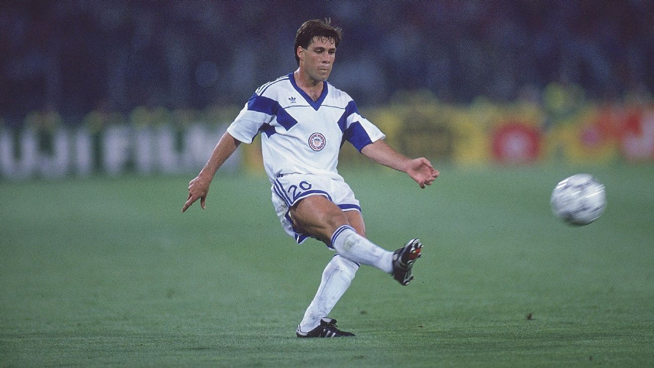 唯一的瑕疵是,他们只在一场世界杯比赛中穿过这套球衣——那就是16强赛对阵巴西时,巴西队的蓝色短裤迫使美国队不得不搭配红色短裤。结果红色元素过多,反而拉低了整套球衣的质感。真可惜,他们没能按初衷穿着这套球衣搭配蓝色短裤。不过,它或许仍可称得上这份榜单中的最佳球衣。
